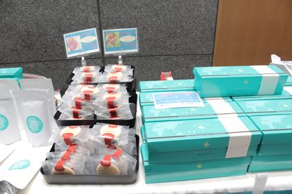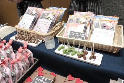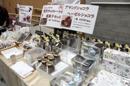 受付を入ると、チョコレートを初めて食した日本人が支倉常長だといわれていることから、置賜地域のお菓子屋さんにチョコレート菓子を出品していただきました。
