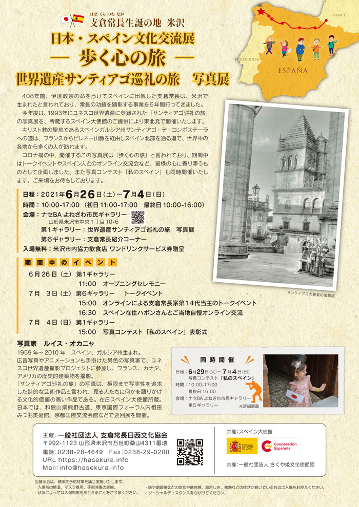 日本とスペインの交流の懸け橋となった支倉常長 の生誕の地「米沢」として、スペインで高名な常長 の偉業を顕彰し、地域歴史の宝として守りつなぎ国 内外に名前を周知していくことで、日西交流促進に より両国文化の振興及び東北の復興に寄与すること を目的とし本事業を行います。